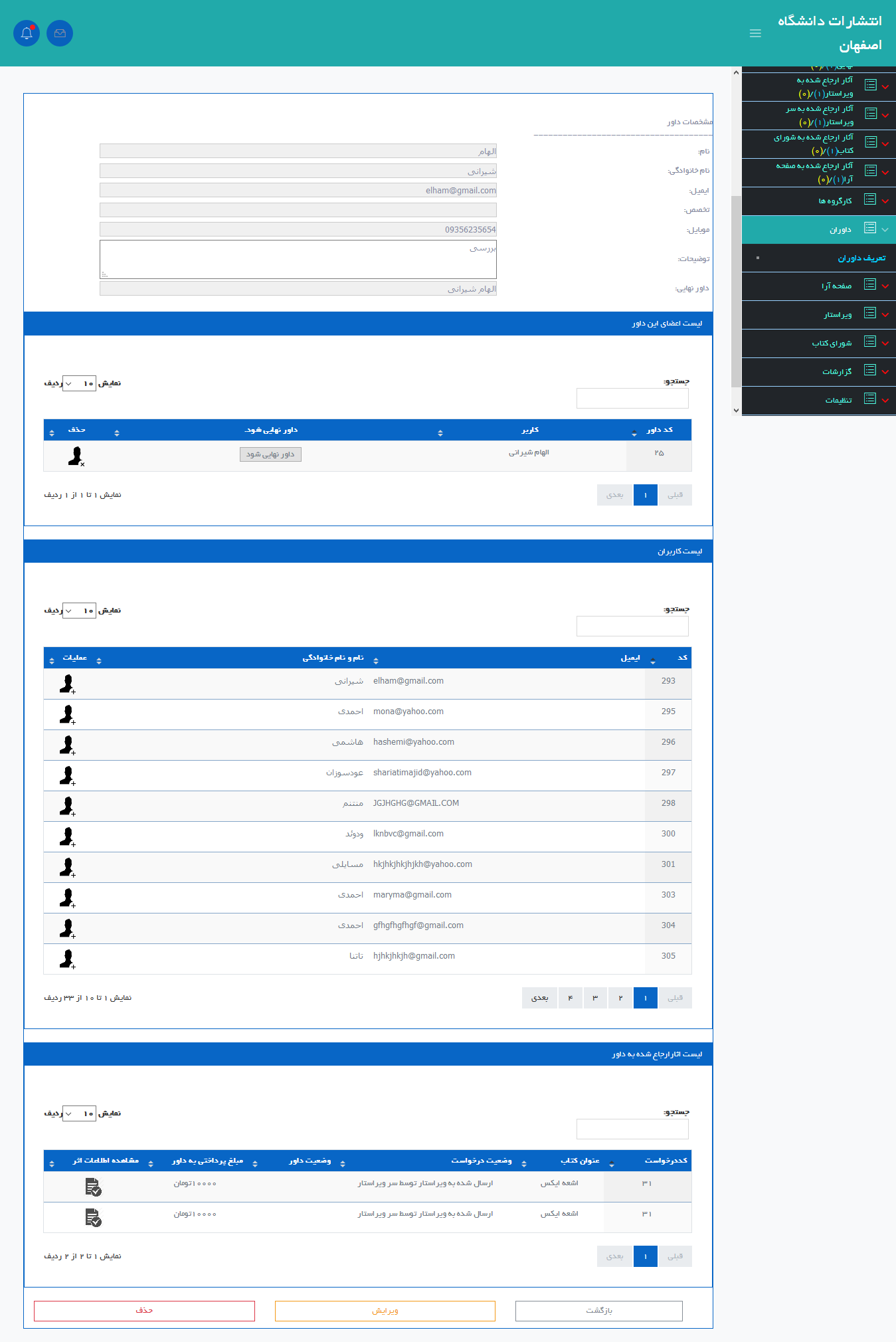 دراین قسمت میتوان از جدول لیست کاربران فردی را به عنوان عضو داور