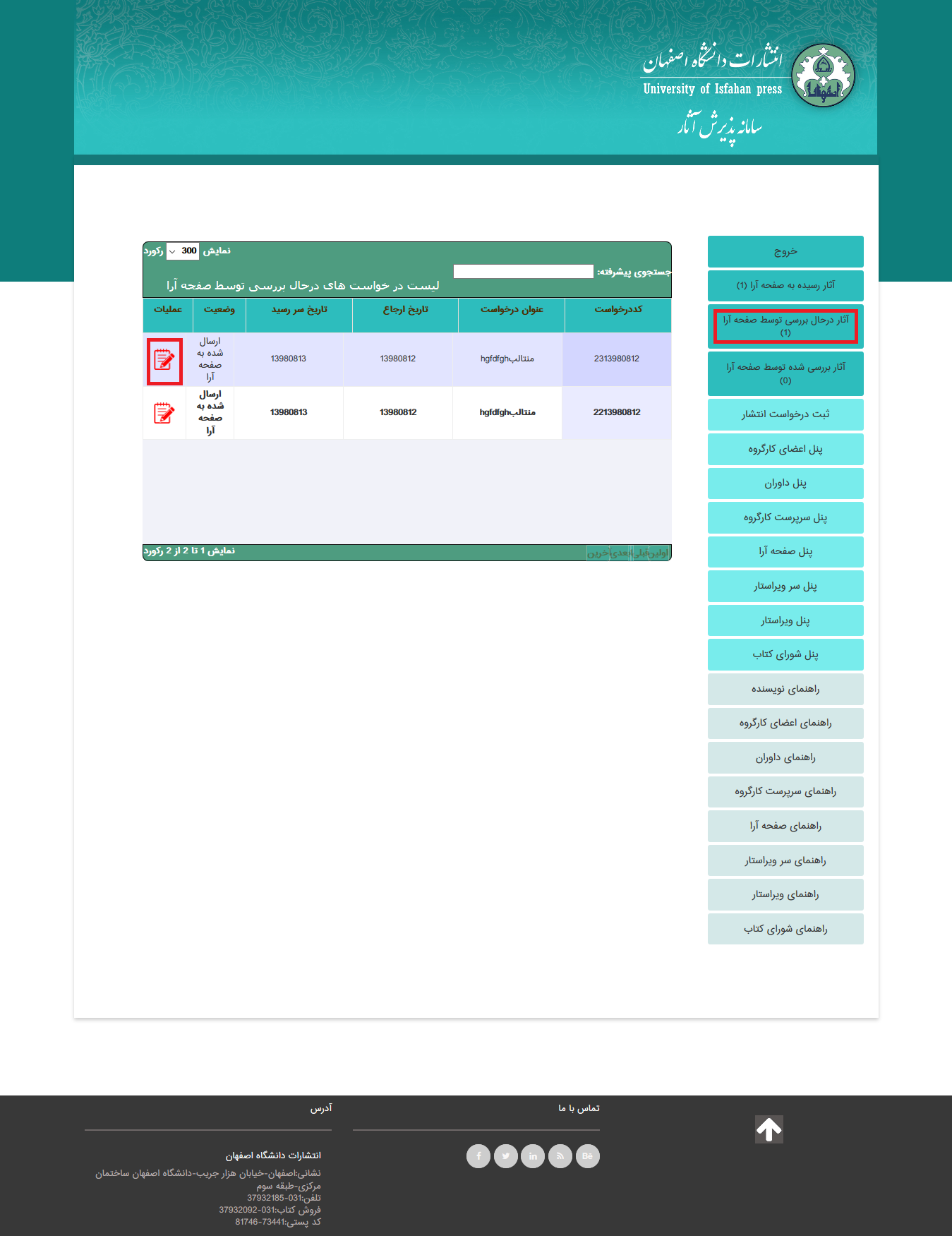 درخواست هایی هستند که به عضو صفحه آرا خاصی رسیده است وآن درخواست در وضعیت ثبت اولیه یا تاخیرنظرات توسط صفحه آرا قرار دارند