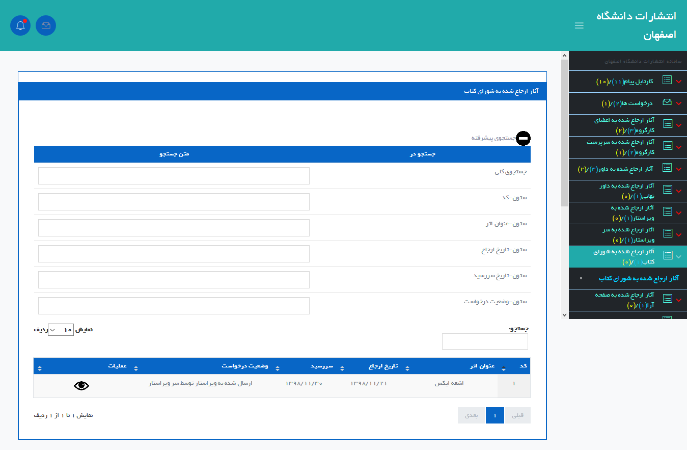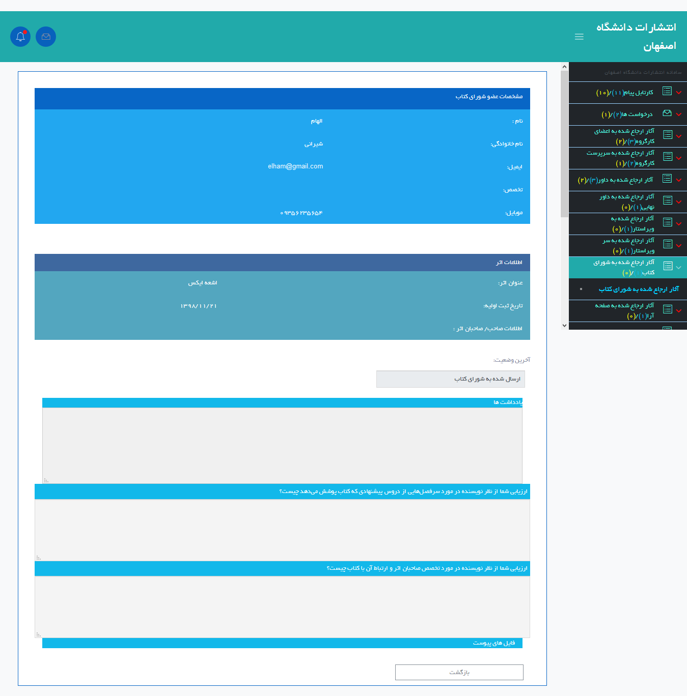 دراین قسمت لیست آثار ارجاع شده به این شورای کتاب هم قابل مشاهده است